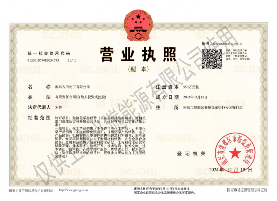 店铺名称: 南京古田化工有限公司 营业执照